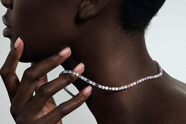 Signature Mini Rainbow Sapphire and Diamond Tennis Necklace: A Symphony of Color and Light