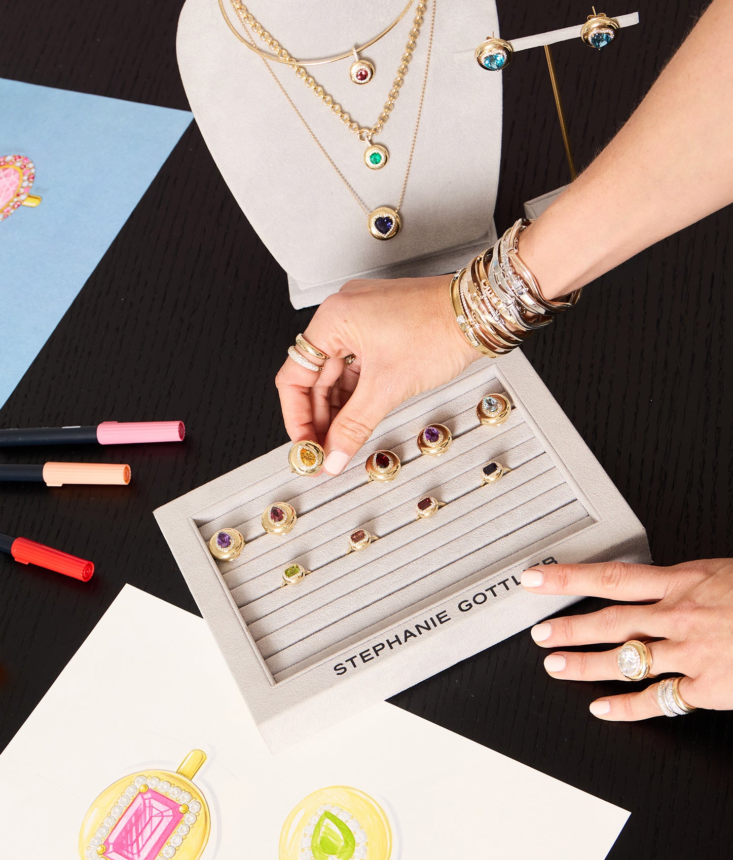 Since 2013, Stephanie has shared her passion for colorful designs, brilliant diamonds and gemstones, and celebrating unforgettable life moments with a growing community of over 500,000 loyal followers. From behind-the-scenes glimpses into custom creations to expert styling tips and trend inspiration, our social channels are where we connect, inspire, and celebrate.