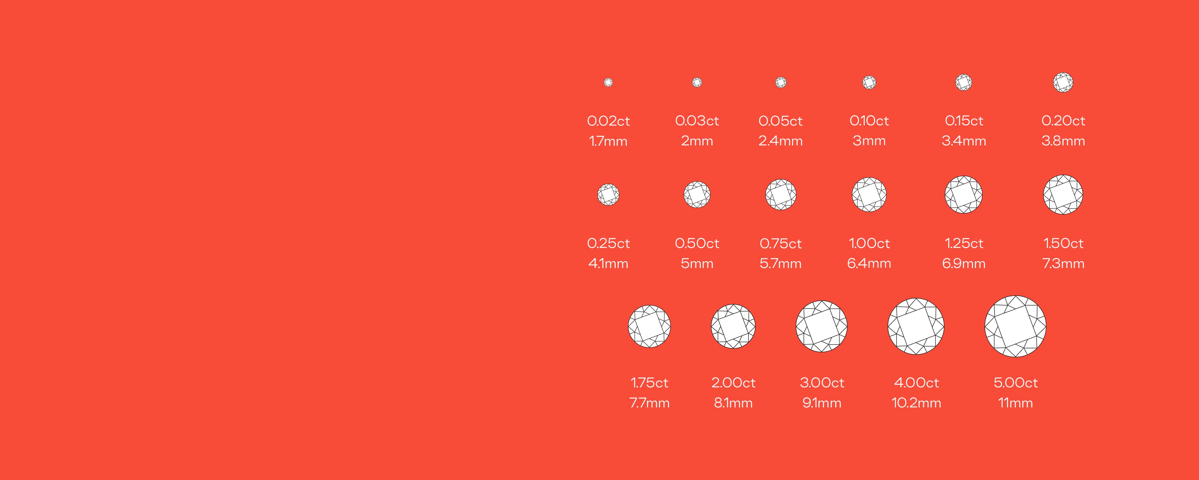 When looking for a diamond, Carat should be used as a guideline but not the determining factor in your selection. Carat is not necessarily the best indication of how large a stone will appear, rather the measurements of the diamond are a more important reflection of “size”.