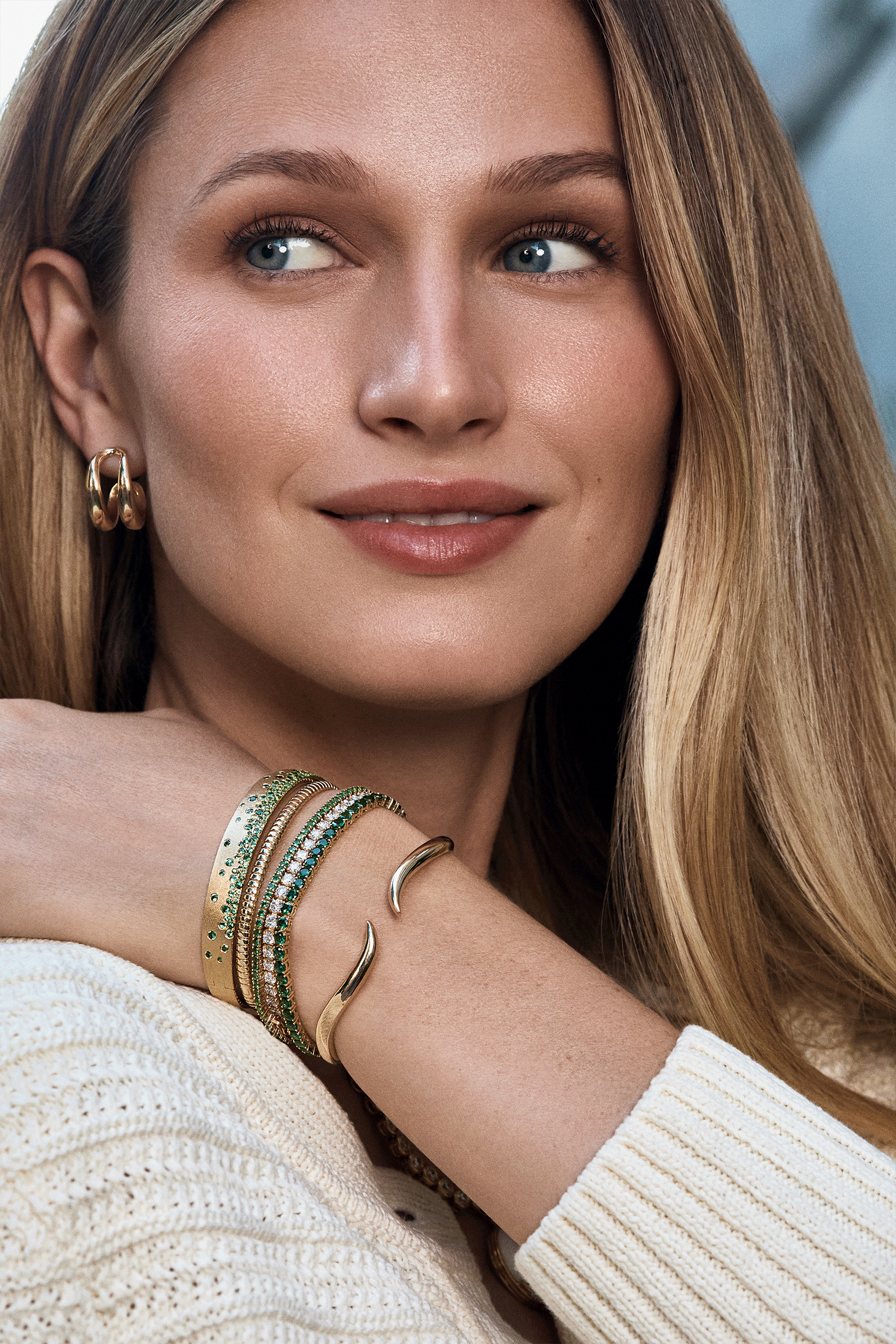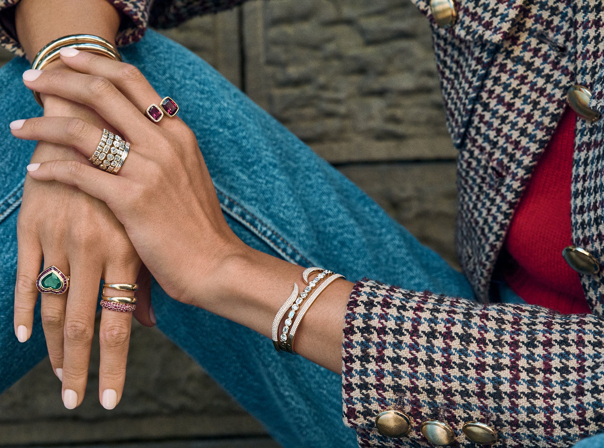 Here I gave "Brat summer" a Fall makeover, bringing rich green tones like tsavorite garnets, emeralds, and peridot, mixed with more classic gold pieces.