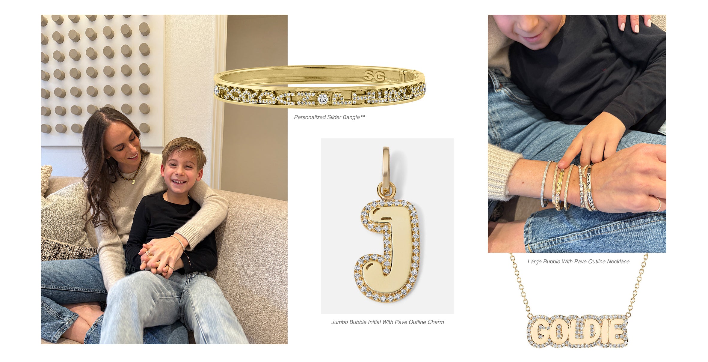 Personalized pieces offer a playful yet intimate way to keep your loved ones close. I’m particularly fond of the Slider Bangle—perfect for adding charms to represent each child or grandchild. Our Bubble Necklace is another standout, consistently a top-seller. It's a beautiful way to incorporate your child's name or initials.